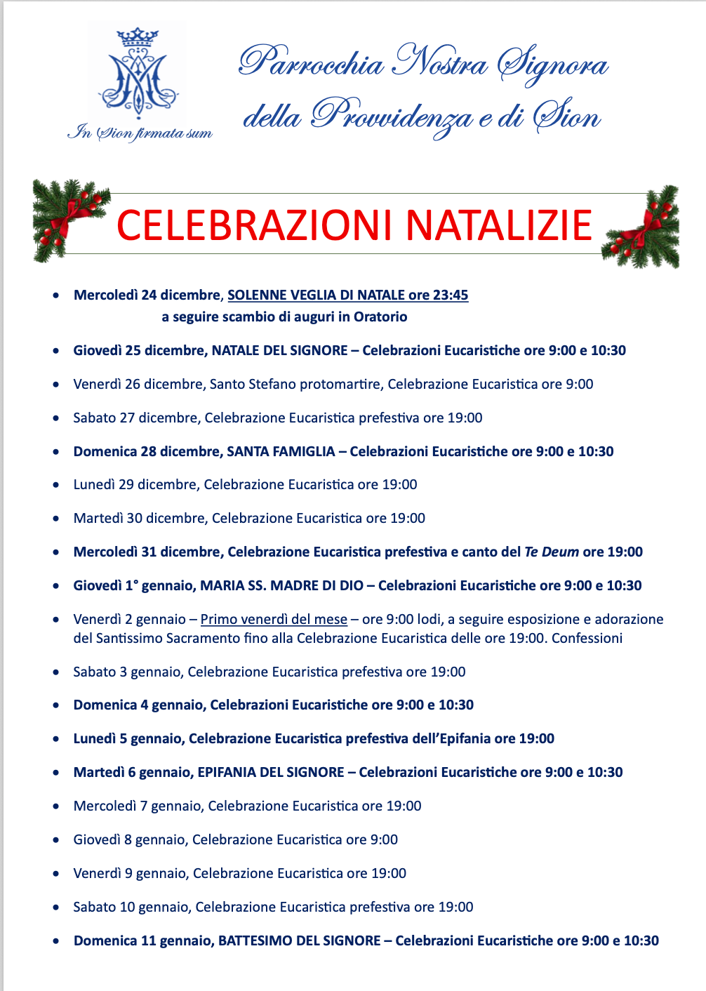 Orari delle Sante Messe